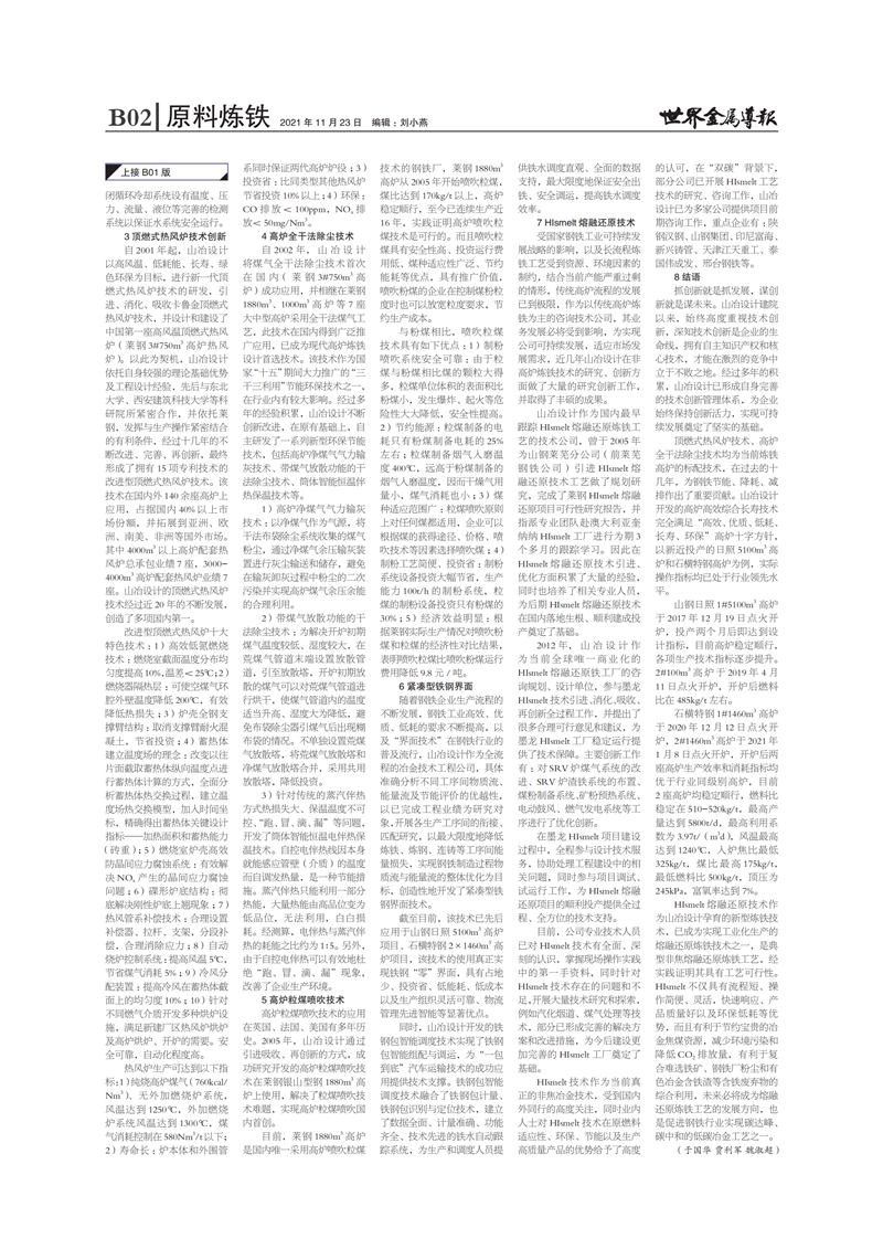 智能環(huán)保大型高爐技術(shù)